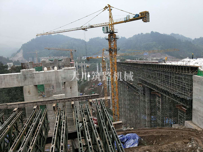特點:現澆梁支架平臺的跨度大,高度高,使用的貝雷片數量達到1808片,加強弦桿2800根,工程于2017年9月開始施工。